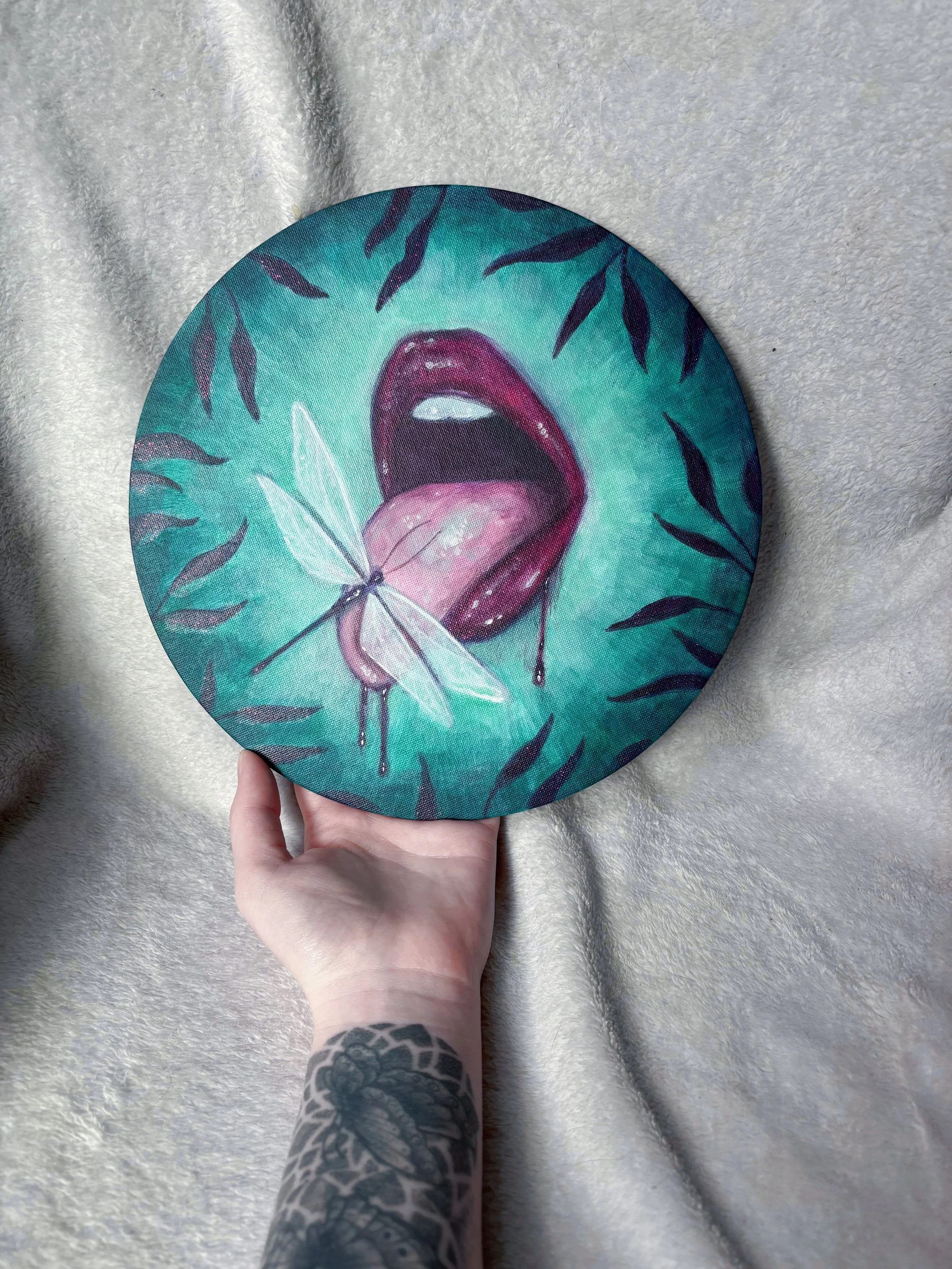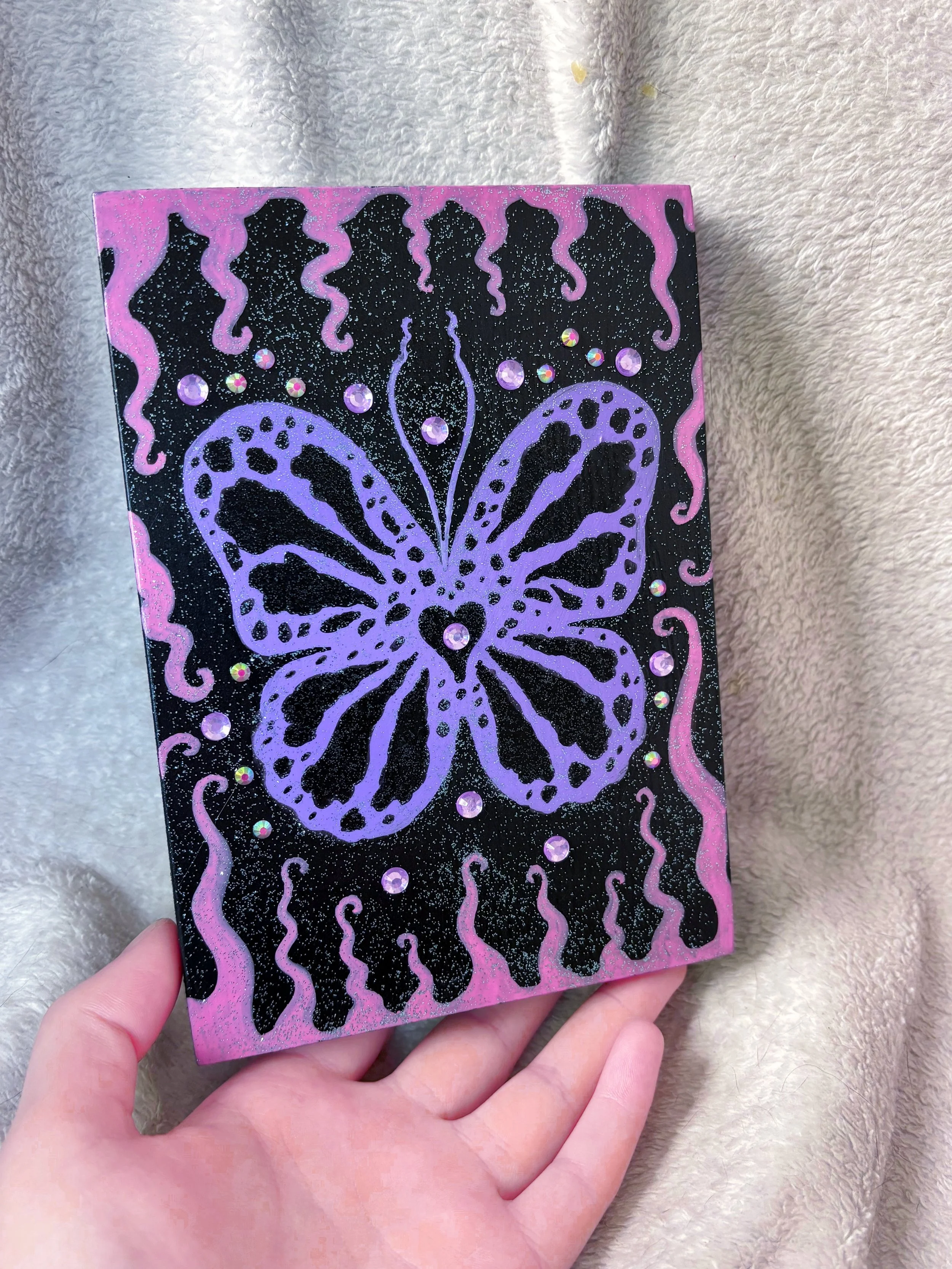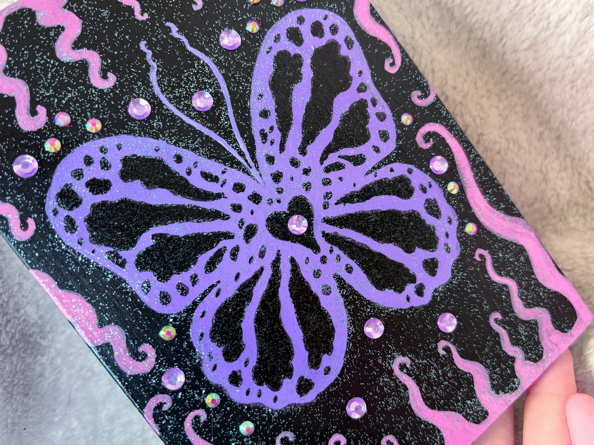 Shop Garden of Wonder Original Painting $85.00 Butterfly Trinket Box $20.00 Neon Glitter Butterfly Painting $50.00 Green Pumpkin Trio Painting $160.00 The Fugly Painting $125.00 “Get Well Soon” Blue Rose Original Painting $200.00 Sold out Pastel Moth mini plaque $26.00 Sold out Scorpion Princess Plaque $60.00 Whimsigoth Butterfly Plaque $50.00 Vampire Eye Bedazzled Plaque $23.00 Sold out Pastel Green Bedazzled Spider Plaque $17.00 Sold out Lavender Spider Bedazzled Trinket Box $15.00 Sold out “Dreamy Snail Scene” Fine Art Print $32.00 Mosaic Paw Print Plaque $40.00 Star Pendant in Black and Green Sale Price: $15.00 Original Price: $20.00 Sold out Star Pendant in Black and Purple $18.00 Star Pendant in Black and White $20.00 Sold out Blue Whimsical Spider ORIGINAL PAINTING $135.00 “Dreamcore Dragonfly” fine art print $23.00 “Pink Pumpkins” fine art print $26.00 “Sweet and Sour” fine art print from $30.00 “Ink Tears” fine art print from $27.00 “Butterfly Bear” glitter keychain $6.00 “Eye of The Beholder” stickers $2.75 “High On Life” fine art print $20.00 “I’ll Wait For You There” fine art print $20.00 “Pink Owl” fine art print $15.00 “Dark Temptation” fine art print $12.00 “Sunflower Bear” fine art print $12.00 “Spooky Blue Mushroom” fine art print $12.00 “Valentine Fairy” fine art print $20.00